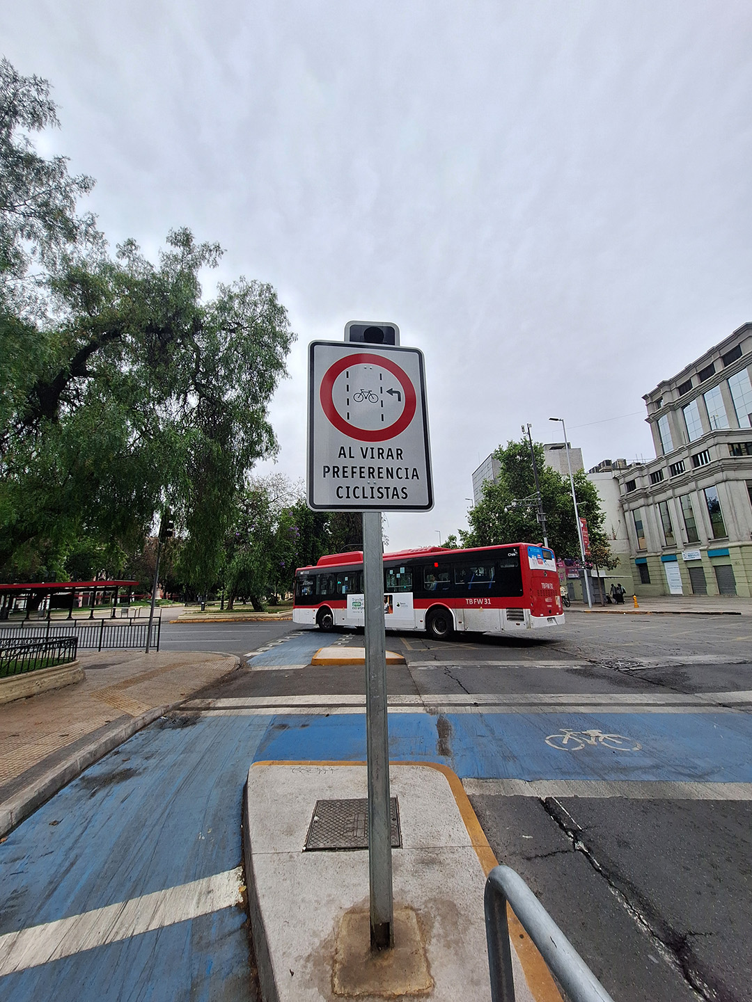 Para los usuarios de la ciclovía, hay señaléticas con las distancias y conexiones hacia otras ciclovías de la ciudad, y los famosos apoya pies metálicos, que ayudan a detenerse sin tener que bajarse necesariamente de la bicicleta.
