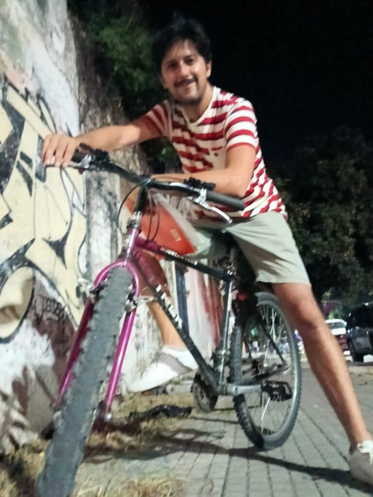 La historia ciclista de Alejandro ha tenido de todo: desde aventuras en bicicletas con los primos en la infancia, hasta un “trueque espectacular” a los 25 años, donde cambió su bici por una de paseo más grande de una amiga. Lamentablemente, esa compañera terminó siendo robada. “La dejé atada solo con la cadena porque el candado se me había estropeado, y bueno, me la robaron. Quedé un tiempo sin bici hasta que conseguí la que tengo actualmente”.